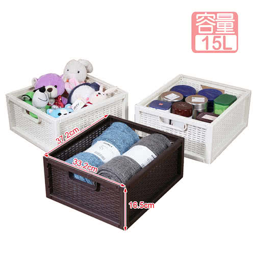 家中的收納問題讓您煩惱不已嗎?想要快速收納又能整齊分類?現在推出!《真心良品》卡特藤蔓風淺型收納置物籃15L簡單的藤編外型,可搭配空櫃和櫥櫃擺放使用,貼心的二側手提設計拿取便利,可收納衣物、雜物、小物、玩具收納一把罩!具高品味及設計感二色可選擇搭配您的居家空間,藤蔓風系列深型與淺型可以混合使用搭配,通過SGS認證不僅品質優良,不含塑化劑安全有保障!還等什麼快來將它帶回家吧!